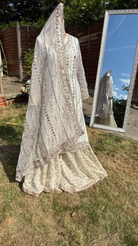 Gotta kinarii grarra sets are handmade gotta heavy work on organza fabric paired with rahsim graara for your special day. We customise sizes.